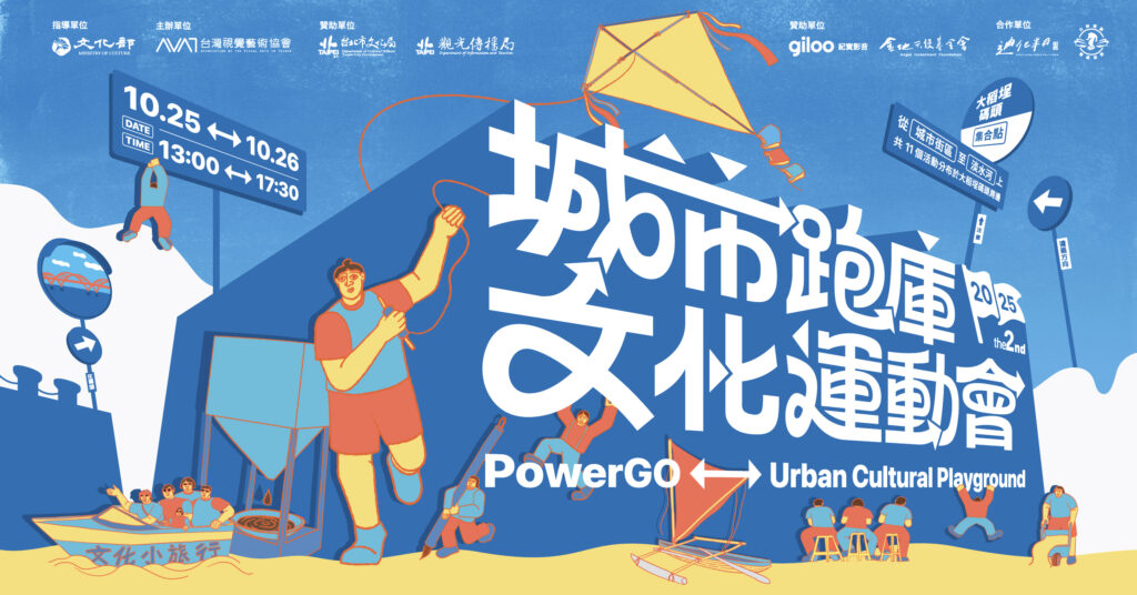 第二屆「2025城市跑庫文化運動會」以文化折返跑的方式回顧1995年環境藝術在台灣實驗性與開創性的展覽《淡水河上的風起雲湧》,邀集了19位藝術家共同參與這次的城市跑庫文化運動會,『庫』象徵城市龐大的文化資料庫,包含歷史文獻、場域記憶與當代創作能量。透過遊戲化的藝術體驗,我們希望大家能邊玩邊走進台灣藝術史,把文化從靜態轉為身體可感的行動,我們將在大稻埕的碼頭上、草地上、遊艇上,邀請你們一同加入這場運動會玩轉淡水河!